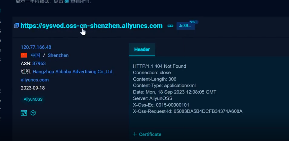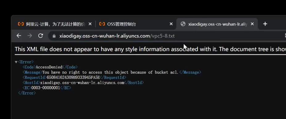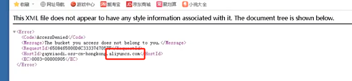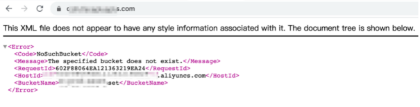 - 访问网站, 出现了以下错误页面, 则网站是用到了OSS