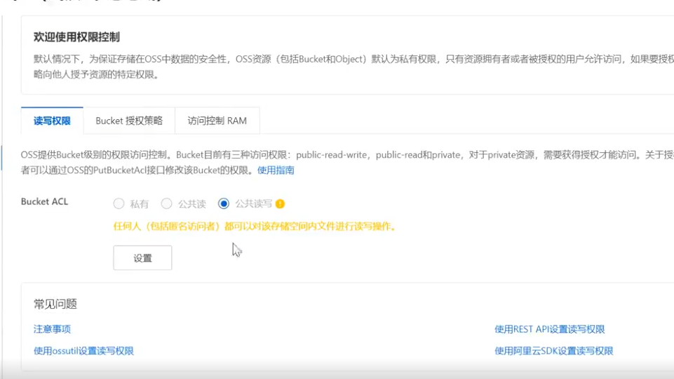 -权限Bucket读写权限:公共读写直接PUT文件任意上传
