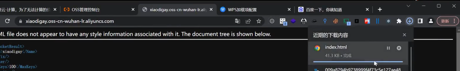 我们绑定域名后, 用域名访问就可以成功解析了, 但是直接通过存储桶访问还是执行的一个下载操作, 如果上传的是其他文件, 具体是下载还是其他的也就根据实际情况去操作了