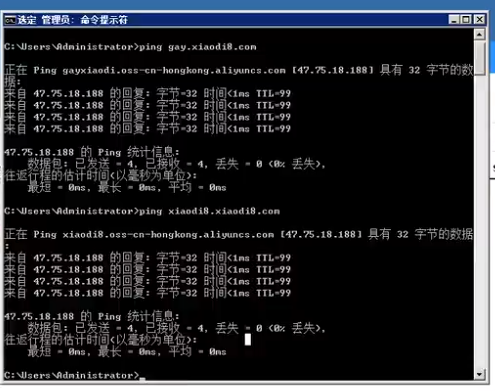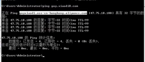 - 如果ping网站的时候, 显示以下, 则网站也是用到了OSS
