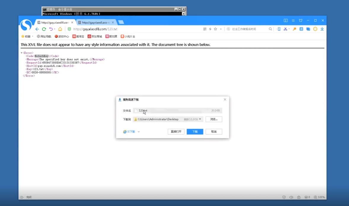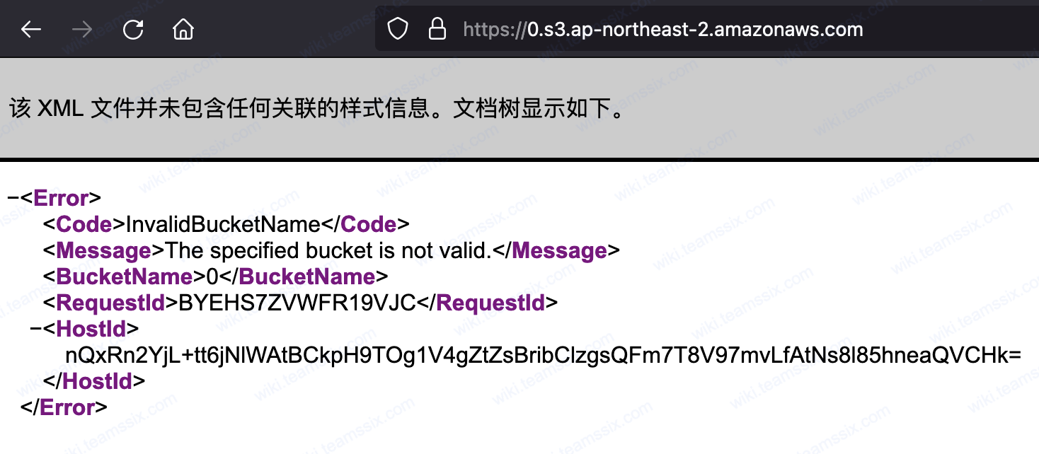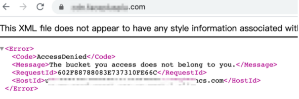 当Bucket显示NoSuchBucket说明是可以接管的,如果显示AccessDenied则不行。